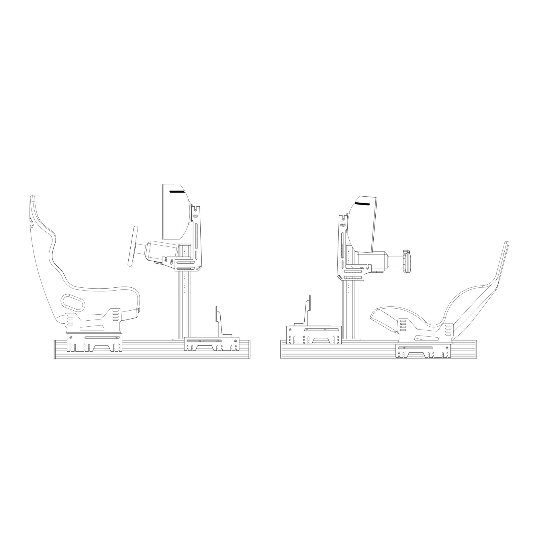 Run the tall base under the seat, or swap it to the pedals for a formula driving position.